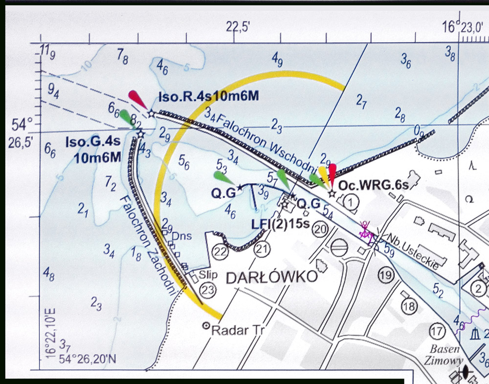 Na egzaminach na stopień jachtowego sternika morskiego podstawowym egzaminem było zadanie nawigacyjne. Zazwyczaj egzaminowani otrzymywali mapę morską, a zadanie polegało na prowadzeniu na tej mapie nakresu kąta drogi i przebytych odległości wynikających ze stanu logu lub wykonywanych pomiarów szybkości jachtu i ewentualnego określania pozycji jachtu z namiarów albo innych pomiarów obserwowanych obiektów lądowych. Te obiekty na mapie lub w spisie latarń były opisywane słowami: „Latarnia – biała wieża z galerią, światło Bl (2) 10 sek.”, „czerwona wieża na cyplu” itp.