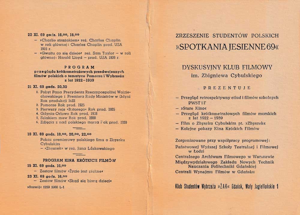 DKF im. Z. Cybulskiego – program Spotkań Jesiennych 1969; str. 1-4