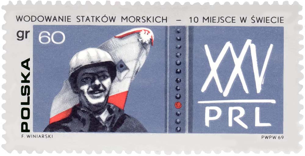 Propagandowy znaczek pocztowy emitowany w 1970 r. na XXV-lecie PRL: