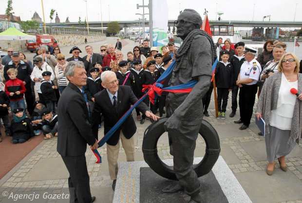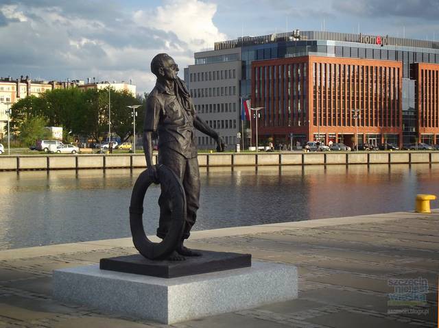 Pomnik Ludomira Mączki, dłuta Pawła Szatkowskiego, w szczecińskiej Alei Żeglarzy na Bulwarze Piastowskim